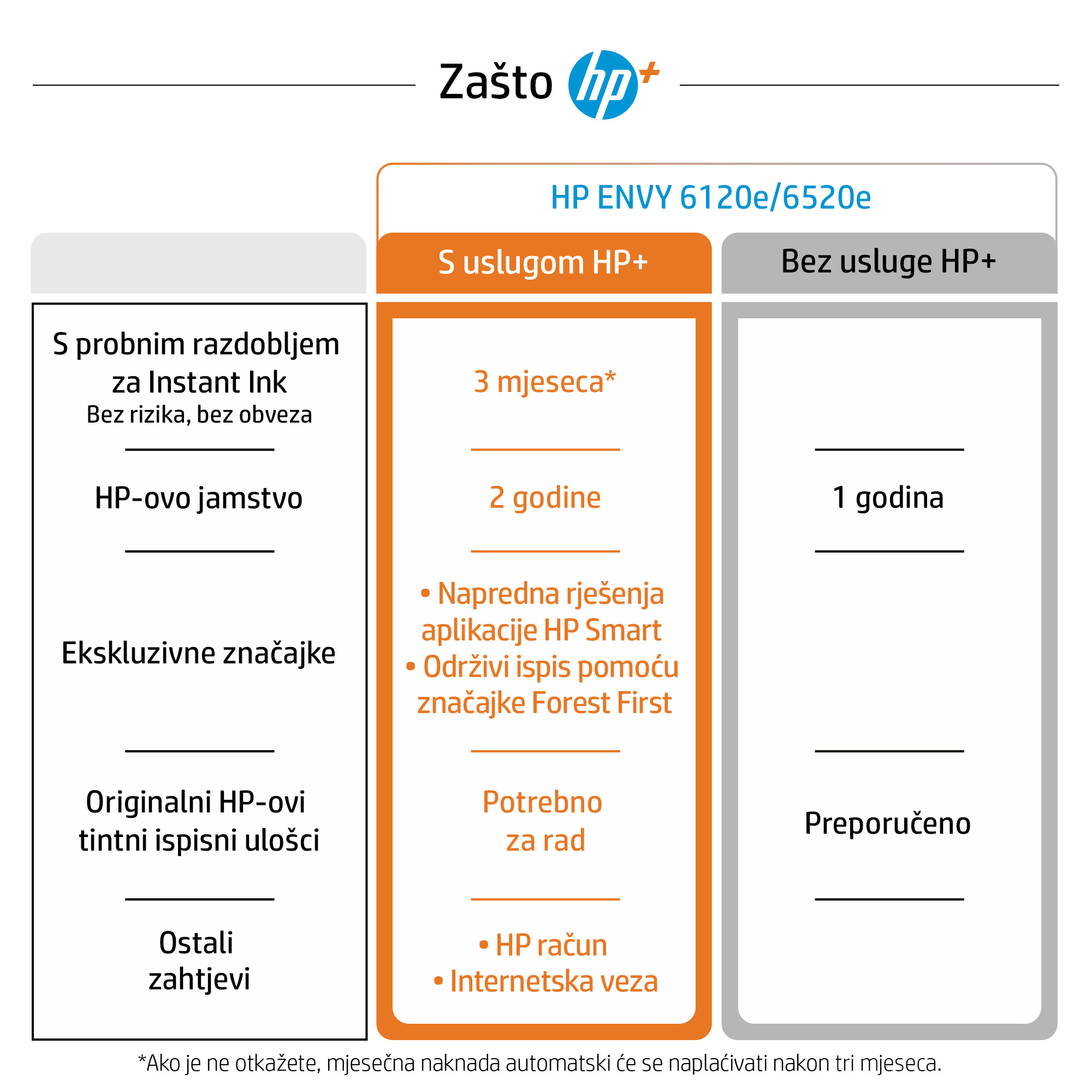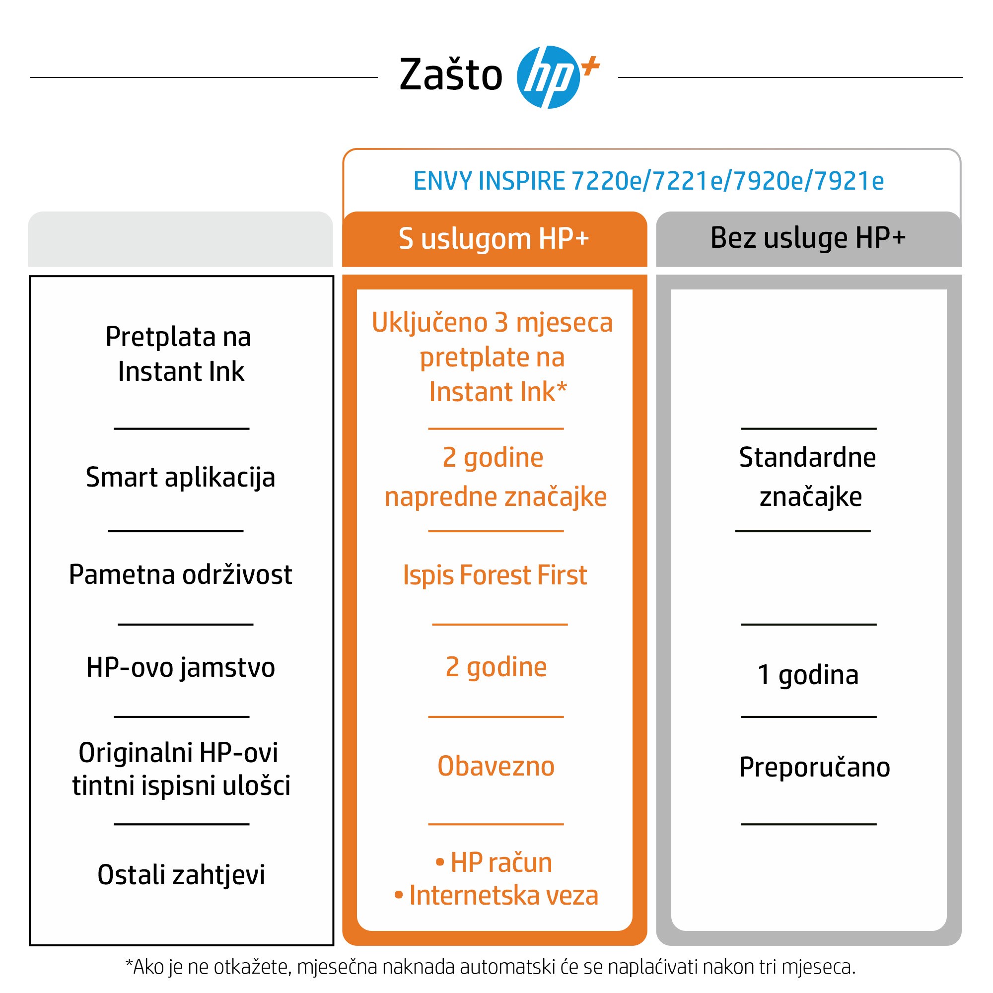 - Aktivirajte HP+ prilikom postavljanja i dobit ćete besplatne mjesece usluge Instant Ink1 te 1 dodatnu godinu HP-ova jamstva. Ako se ne otkaže Instant Ink, nakon probnog perioda usluge primjenjuju se mjesečne naknade.
